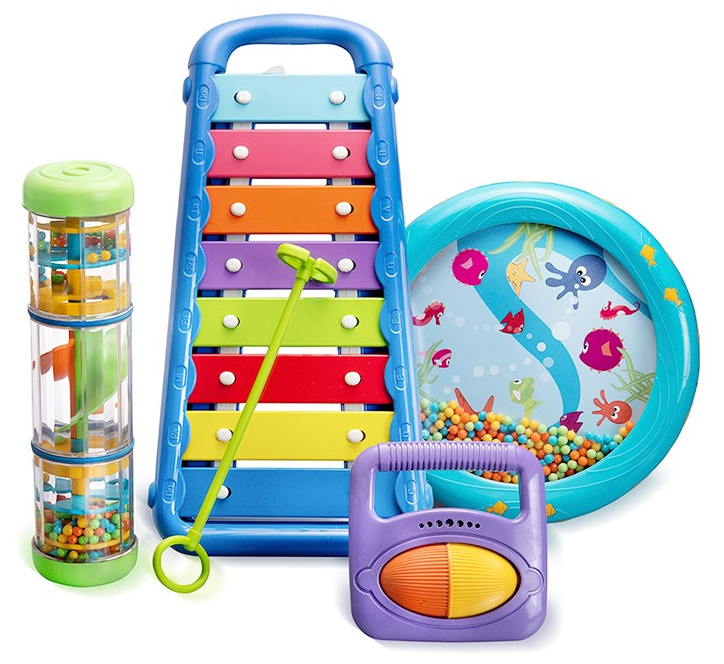 12개월 아이들의 위한 할릴릿 리틀핸드 뮤직밴드! 베이비 실로폰, 미니 웨이브 드럼, 래틀 롤러, 스피너메이커로 구성된 악기세트입니다. 음악놀이를 유아들에게 자기 의사를 음악이라는 소리와 손으로 움직이는 행위를 가지고 스트레스를 풀 수 있는 가장 좋은 자기 표현 방법입니다.