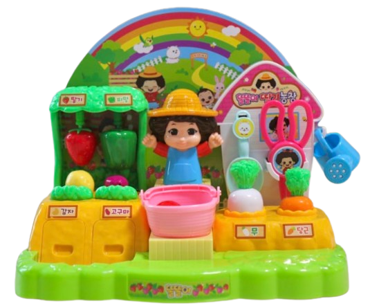 똘똘이 딸기농장으로 재미있는 놀이해요~!!! 딸기, 피망, 감자, 고구마, 당근, 무의 6가지 과일,채소와 말하는 가위, 물뿌리개, 삽, 수확 바구니의 4가지 수확도구로 딸기농장을 운영해 보아요. 말하는 가위로 채소를 톡톡! 수확을 해보고 삽으로 맛있는 감자와 고구마를 뒹구르르 수확해요. 무와 당근을 쏙쏙 뽑아보기도 하고 딸기농장에 물을 줄수도 있어요. 농장 놀이를 통해 농장 수확 과정과 수확 도구의 사용법도 배우고 내가 직접 농장을 가꾸면서 창의력과 상상력을 키워보아요.
