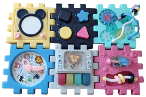 아기 발달에 딱 맞게, 체계적 구성! 터미타일 장난감, 소근육 감각발달이 하나로! 색감, 촉감, 소리로 꽉 채운 놀이. 상체근육 발달을 위해 엎드려 노는 시간! SOUND! 흔들흔들 ~ 사자로 놀이해요. 귀가 쫑끗쫑끗! 거울에 얼굴이 쏘옥! 거울 속 모습이 "나"라는 것을 알아가고 표정을 보며 공감능력이 발달해요. 6면의 큐브로 호기심 폭발, 탐색활동이 활발해 질 때, 큐브를 자유자재로 변신시켜보고 6면을 쌓고 끼우면서 생각을 넓게 확장해 나가요. 앉아서 놀이 할 때, 손과 손가락 소근육활동을 시작할 시기! 다양한 모양과 질감, 크기, 조작방법을 달리하면 소근육 발달의 속도를 높일 수 있어요.
