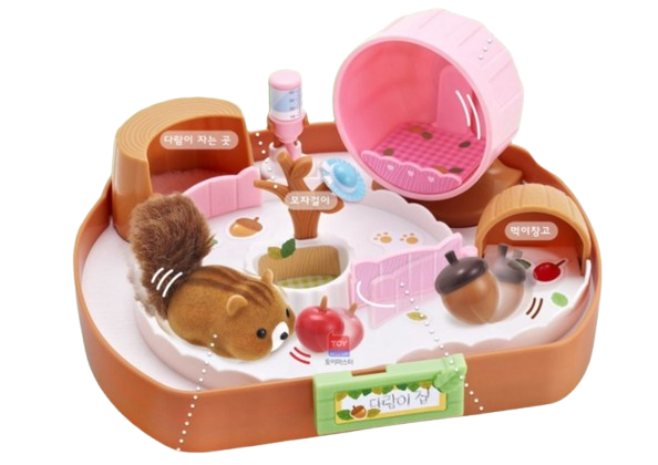 도토리를 굴리는 데굴데굴 다람이를 소개합니다. 다람이가 길따라 데굴데굴 열매를 굴려요. 다람이가 모자 쓰고 돌아다니고, 빙글빙글 쳇바퀴 굴려요.