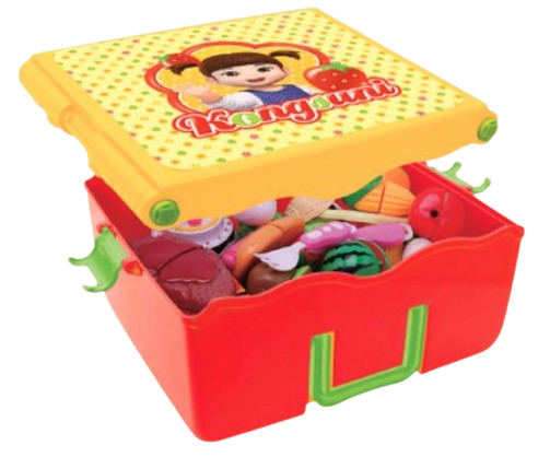 콩순이 싹뚝 테이블 보관함이 테이블로 짠~! 보관함에 요리재와 도구들을 깔끔하게 정리할 수있어요. 과일과 야채 모형으로 직접 썰고 만지며 탐색해 보세요. 과일과 야채, 요리 이름을 자연스럽게 익히며 잘 안먹는 과일, 야채와 조금은 더 친해질 수 있습니다.