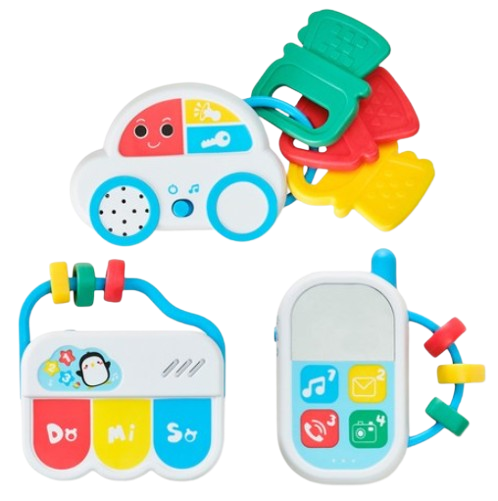뮤지컬 멜로디 장난감 3종세트. 실제 자동차 흉내를 내며 청각과 상상력이 발달되고, 피아노로 자율적인 연주과 듣기놀이로 음감, 소근육자극, 휴대폰으로 모방놀이를 하며 인지력과 역할놀이 능력 향상!