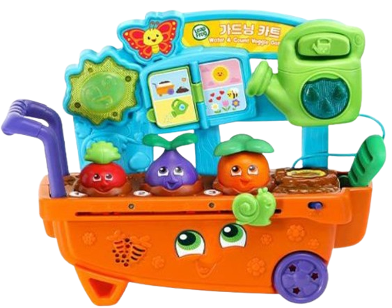 세 가지 채소를 올바른 위치에 심거나 뽑으면서 여러가지 학습과 소근육 발달이 동시에 가능해요. "나는 당근이야, 내가 제일 커!" 채소마다 심어져 있는 깊이가 달라서 오른쪽으로 갈수록 뽑을 때 더 큰힘이 필요해요. 놀이를 통해 다리의 소근육이 발달하면서 단계별로 성장하는 모습을 확인해보세요. 햇빛을 비추고, 물을 주면서 채소가 잘 자랄 수 있도록 도와요~ 해님의 말을 듣고 채소를 심어보세요 "좋은아침! 가드닝 시간이야!" 물 뿌리개를 기울이면 불빛이 들어오고 쪼르륵 실감나는 물 소리가 나요. 모종삽을 흙더미 아래 투입구에 넣으면 귀여운 동물 친구를 만날 수 있어요. 달팽이 슬라이더를 좌우로 움직이면 세 가지 채소가 빙글빙글 회전해요. 식물에 대해 알려주는 책 페이지가 있어요! (한국어/영어 모드)