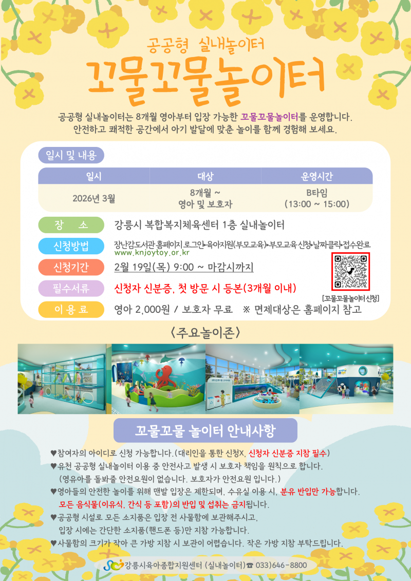 공공형 실내놀이터 영아전용시간 운영 안내 페이지 정보 작성자 관리자1 댓글 0건 조회 984회 작성일 25-10-24 17:24 목록 본문 많은 관심과 참여 부탁드립니다! 이전글2025년 4분기 신규장난감 입고안내 25.11.19 다음글'플리마켓 & 놀이마당' 행사로 인한 운영 변경 안내 25.10.20