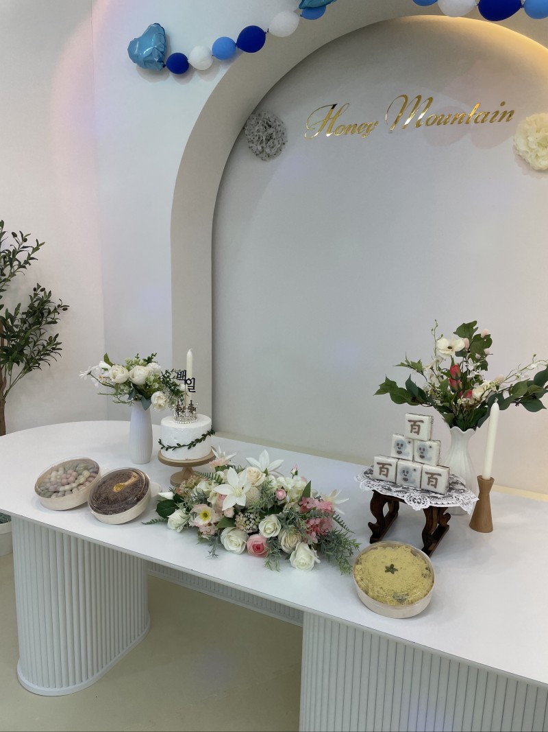 똑같은 백일상은 하기 싫어서 대여 소품에 일부 다른 소품을 추가로해서